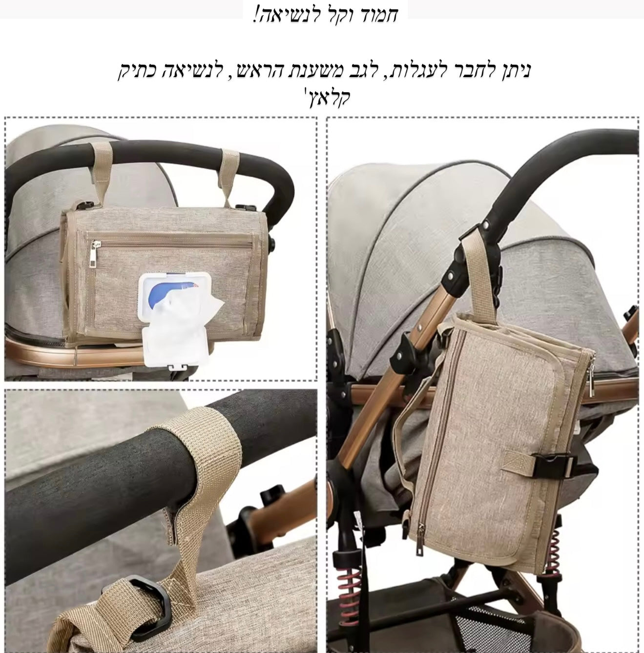 כיסים ייעודיים לחיתולים, מגבונים ואביזרים כך שכל מה שצריך נמצא במקום אחד ובהישג יד