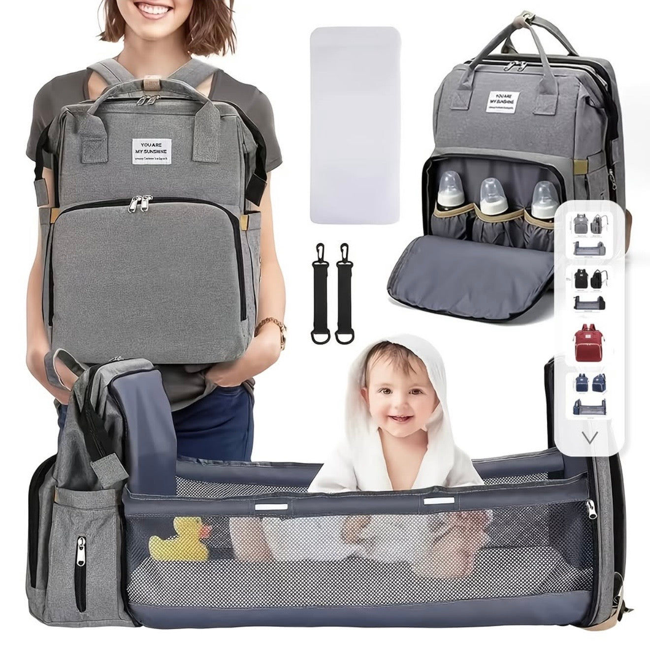 הוא הרבה יותר מתיק – הוא ממש תחנת החתלה ניידת! כולל מזרן רך ובד הצללה, כך שניתן להחליף חיתול או לתת לתינוק לנוח במקום בטוח והיגייני. מושלם להורים בתנועה שרוצים להיות מוכנים לכל מצב
